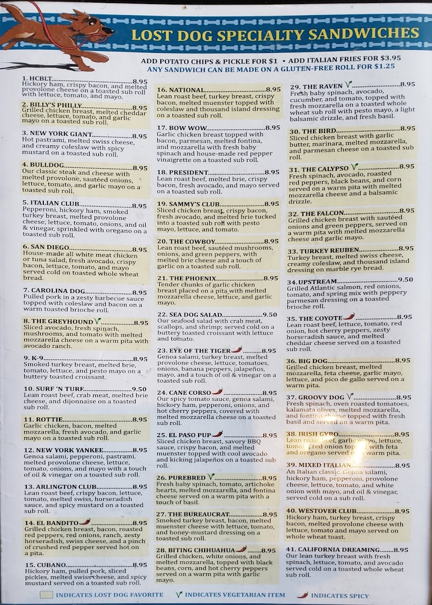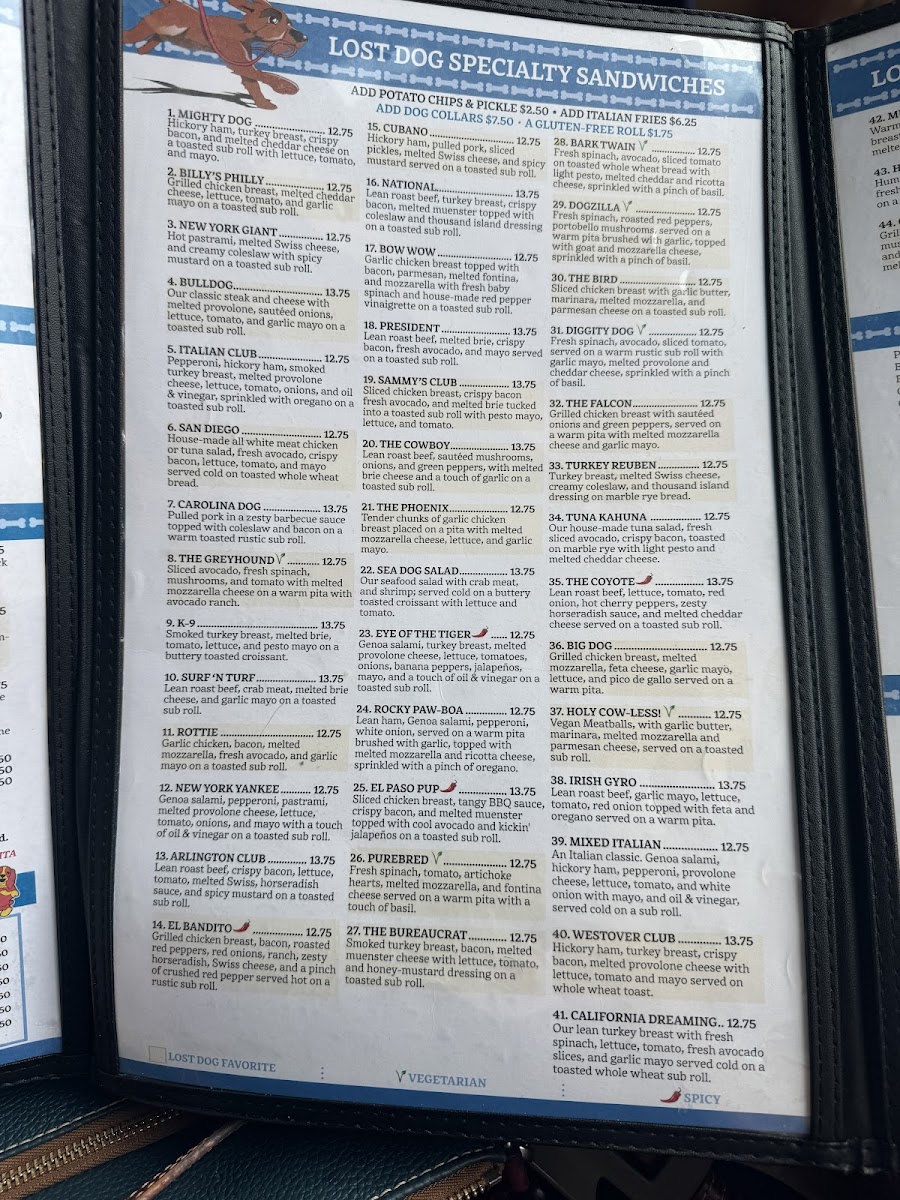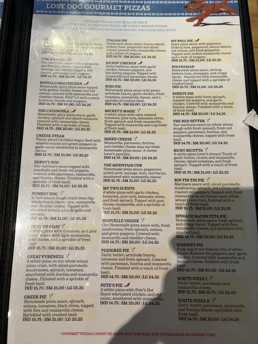 The menu at Lost Dog Cafe is a treasure trove, showcasing a variety of options that cater to diverse palates. Begin your meal with one of their mouthwatering salads, like the Farm Dog Salad or the tantalizing Classy Lassie, each priced at $19.50 and bursting with fresh flavors. For something truly comforting, dive into their large pizzas, where you can’t go wrong with the Popeye Pizza or the savory Buffalo BBQ Chicken, both popular among regulars. At around $30, these pizzas promise generous toppings and a perfectly crispy, chewy crust that will leave your taste buds wanting more.